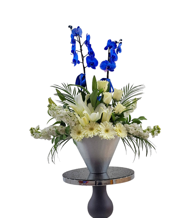 Harika tasarım hazırladık size çift dal maviorkide ve beyaz çiçeklerle size özel tasarım çiçekler hazırladık