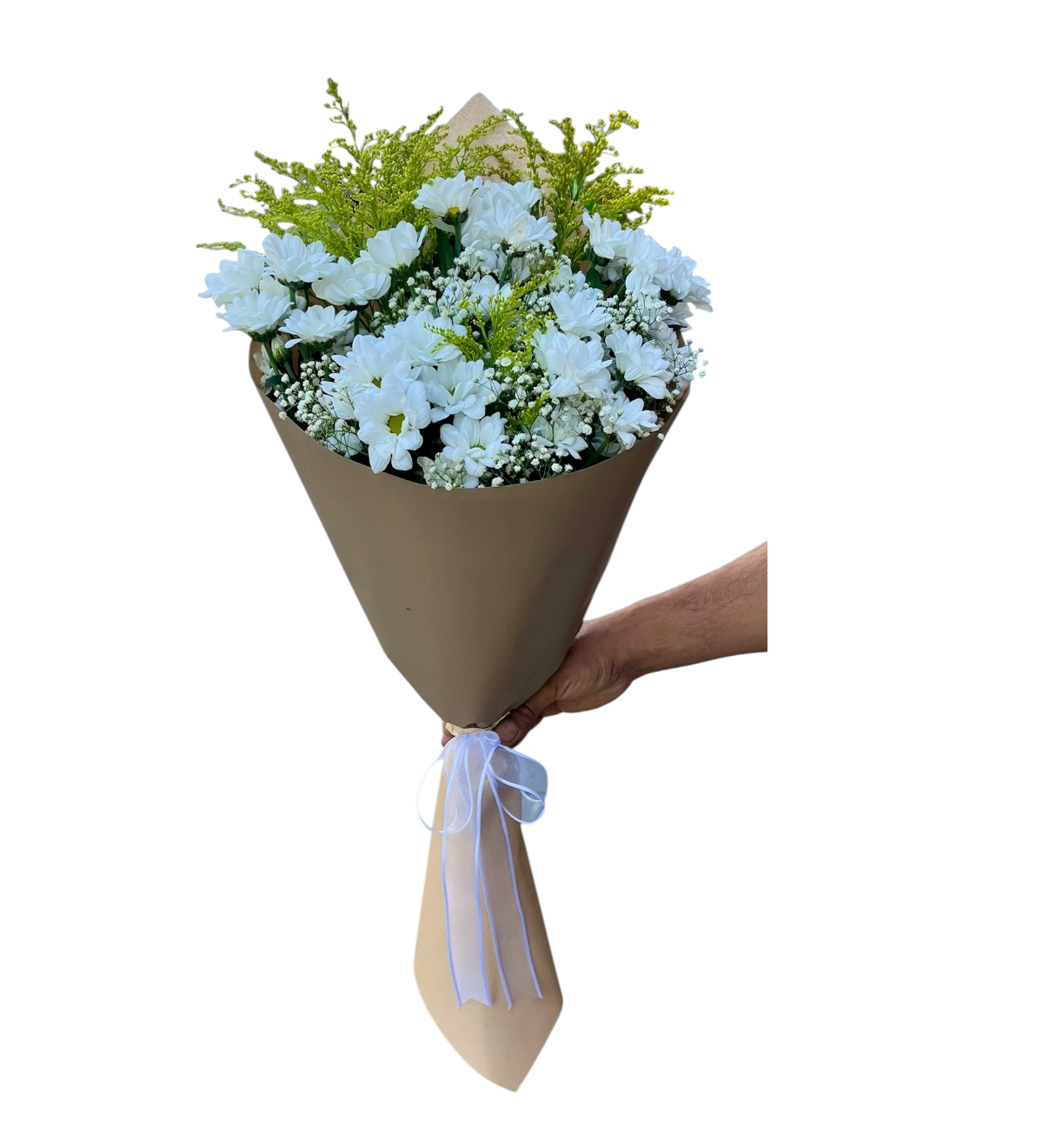 Ürün Adı Beyaz Masumiyet Buketi Ürün Açıklaması beyaz papatya ve beyaz krizantem çiçeklerinden hazırlanan bu zarif buket saflığın huzurun ve iyi dileklerin en güzel ifadesidir kraft ambalajı cipso çiçekleri ve doğal yeşillikleri ile hem sade hem de şık bir görünüm sunar geçmiş olsun yeni iş tebriği doğum günü teşekkür ve taziye ziyaretleri için uygun bir tercihtir sönmez çiçek uzman floristleri tarafından özenle hazırlanır ve aynı gün teslimat imkanı ile sunulur Ürün İçeriği beyaz papatya beyaz krizantem cipso süsleme mevsim yeşillikleri kraft ambalaj beyaz kurdele Kullanım Alanları geçmiş olsun çiçeği yeni iş tebriği teşekkür hediyesi doğum günü çiçeği taziye ve başsağlığı ziyaret ve özel günler Neden Bu Buketi Seçmelisiniz canlı ve taze çiçekler doğal ve sade tasarım her ortama uyumlu görünüm uzun süre dayanıklı çiçek yapısı aynı gün teslimat sönmez çiçek kalite garantisi Bakım Önerisi buketi temiz bir vazoya alın saplarını çapraz kesin her gün suyunu değiştirin serin ve aydınlık ortamda muhafaza edin direkt güneş ve rüzgardan uzak tutun Teslimat Ve Sipariş sönmez çiçek online satış ve aynı gün teslimat hizmeti sunar istanbul avrupa yakası geneli hızlı kurye imkanı telefon ve whatsapp üzerinden sipariş verilebilir