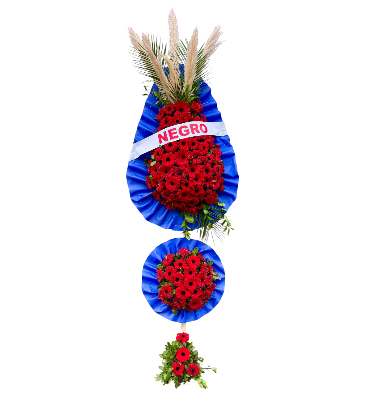 Yaklaşık 2 metre yüksekliği ile organizasyon alanında dikkat çeken bu kırmızı gerbera düğün, nikah ve açılış çelengi gösterişli ve dolgun tasarımıyla hazırlanır. Yoğun şekilde yerleştirilen canlı kırmızı gerberalar güçlü bir görsellik sunarken üst bölümde kullanılan pampas ve dekoratif yeşillikler tasarıma hareket ve zarafet katar. Özel isim yazılı şerit uygulaması ile tamamen organizasyona özel hazırlanır ve sipariş sırasında iletilen firma veya aile ismi özenle yazılır.